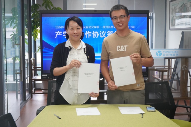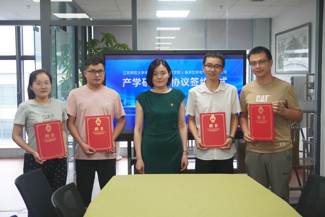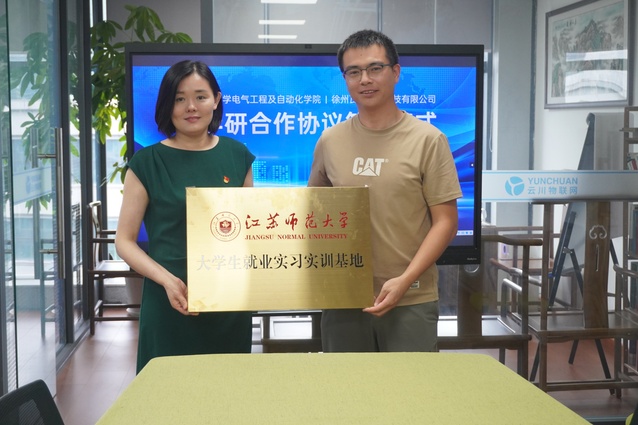 随后,双方签订了产学研合作协议,举行“江苏师范大学大学生就业实习实训基地”授牌仪式,并向唐宏飞总经理及3位技术骨干颁发了“电气学院校外导师”聘书。