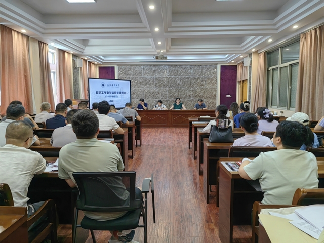 会上,院长段纳对《教职工考勤与请假管理规定(2025年修订)》进行讲解,明确了请假类型及程序等方面内容,要求全体教师遵守制度,严格执行。