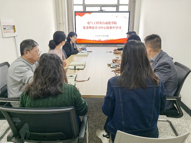 10月10日下午,电气工程及自动化学院举行党委理论学习中心组(扩大)学习会,深入学习《习近平谈治国理政》第五卷相关内容。党委理论学习中心组全体成员及各党支部书记参加学习,党委书记潘震鑫主持会议。