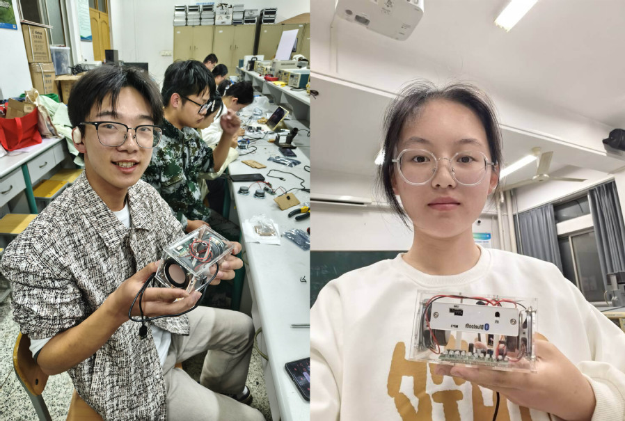 作品考核采用“作品展示+综合评定”模式,指导教师徐止政和社团骨干组成评审组,分别从作品的功能实现、焊接难度、焊接质量三方面进行打分,学生依次展示作品并讲解设计思路,部分学生还将简易电路设计与作品进行巧妙融合,展现了技能训练效果与创新思路。