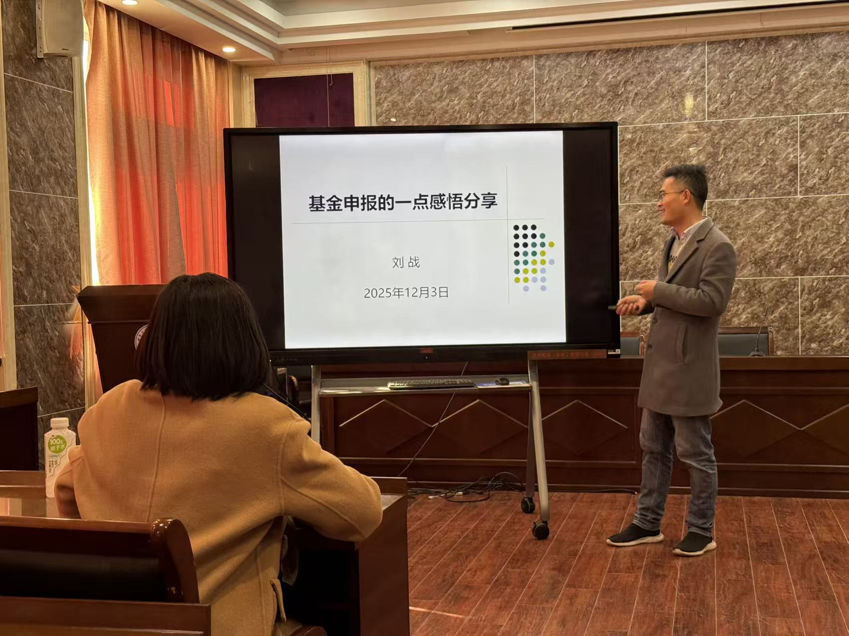在经验分享会阶段,学院邀请近年获批基金项目的於鑫教授、刘战副教授、门运哲博士作专题报告,学院相关领导及全体拟申报2026年国家自然科学基金项目的教师参会。於鑫教授结合个人申报经历,围绕夯实研究基础和申报书撰写注意事项进行了全面细致的讲解;刘战副教授以“基金申报的感悟分享”为题,从项目培育、选题凝练以及文本呈现等方面深入解析了基金申请的整体逻辑和关键要素;门运哲博士则聚焦“青年基金选题与撰写注意事项”,针对青年教师特点提出“小切口、深挖掘、强关联”的选题原则,详解了学术积累与文本打磨的协同策略。三位老师的分享内容详实、干货满满,现场互动热烈。