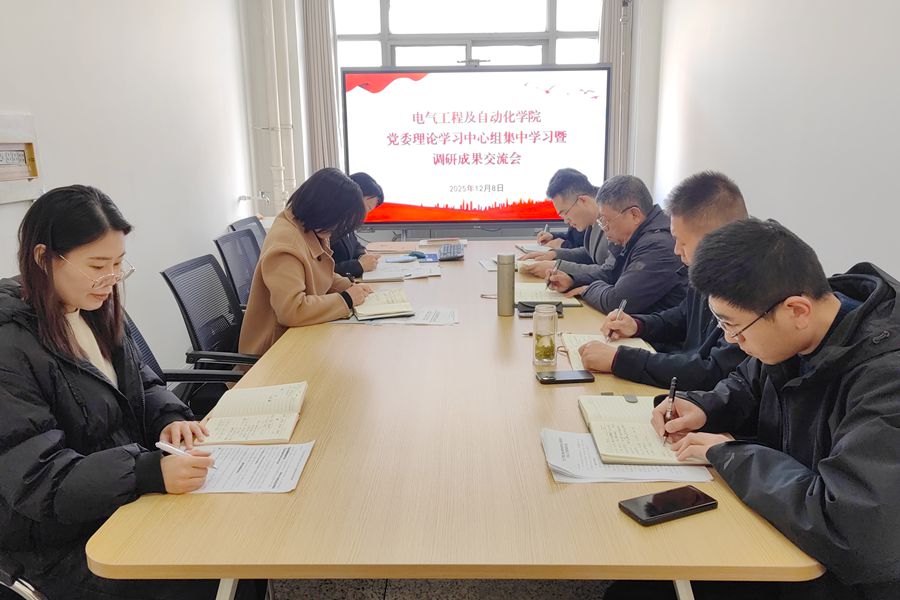 12月8日上午,电气工程及自动化学院召开党委理论学习中心组专题学习会暨调研成果交流会,中心组全体成员参加学习交流,党委书记潘震鑫主持会议。