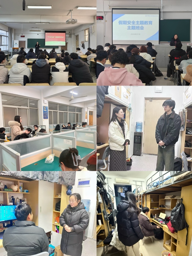 在主题班会上,班主任、辅导员围绕离校返乡交通安全、防火防盗、防范电信诈骗、网络安全等重点领域进行案例讲解,提醒同学们树立安全意识,做好离校报备。针对短期留校研究生,学院专门召开安全教育会议,就在校学习生活、校外交通出行及落实“晚点名”等制度作出提醒,确保管理不断线、服务不打烊。在检查宿舍时,老师们重点对使用违章电器、插排不断电等风险隐患进行了排查,提醒同学们离校前及时断水断电、关窗锁门,妥善保管个人财物,过一个平稳安全的假期。