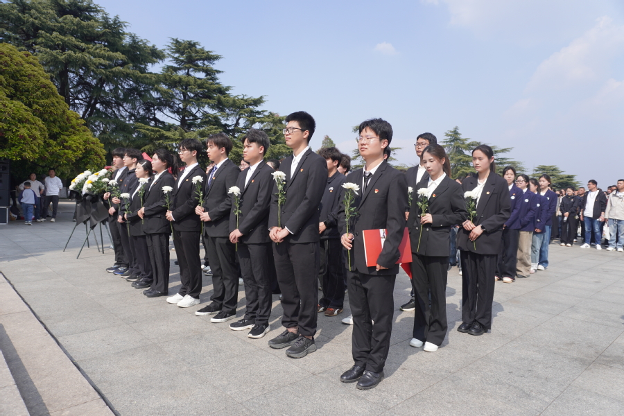 在庄严的淮海战役烈士纪念塔前,全体学生整齐肃立,举行庄重的祭奠仪式。同学们在默哀中追忆先烈足迹,感悟信仰力量。学生党员代表顾雪娣发言,深切缅怀革命先烈,并结合工科学子的使命担当表达了奋发图强的坚定决心。学生团员代表谢昱带领全体团员重温入团誓词,彰显时代青年不忘初心、紧跟党走的坚定信念。随后,同学们绕塔一周瞻仰回廊浮雕,依次敬献鲜花寄托哀思之情。