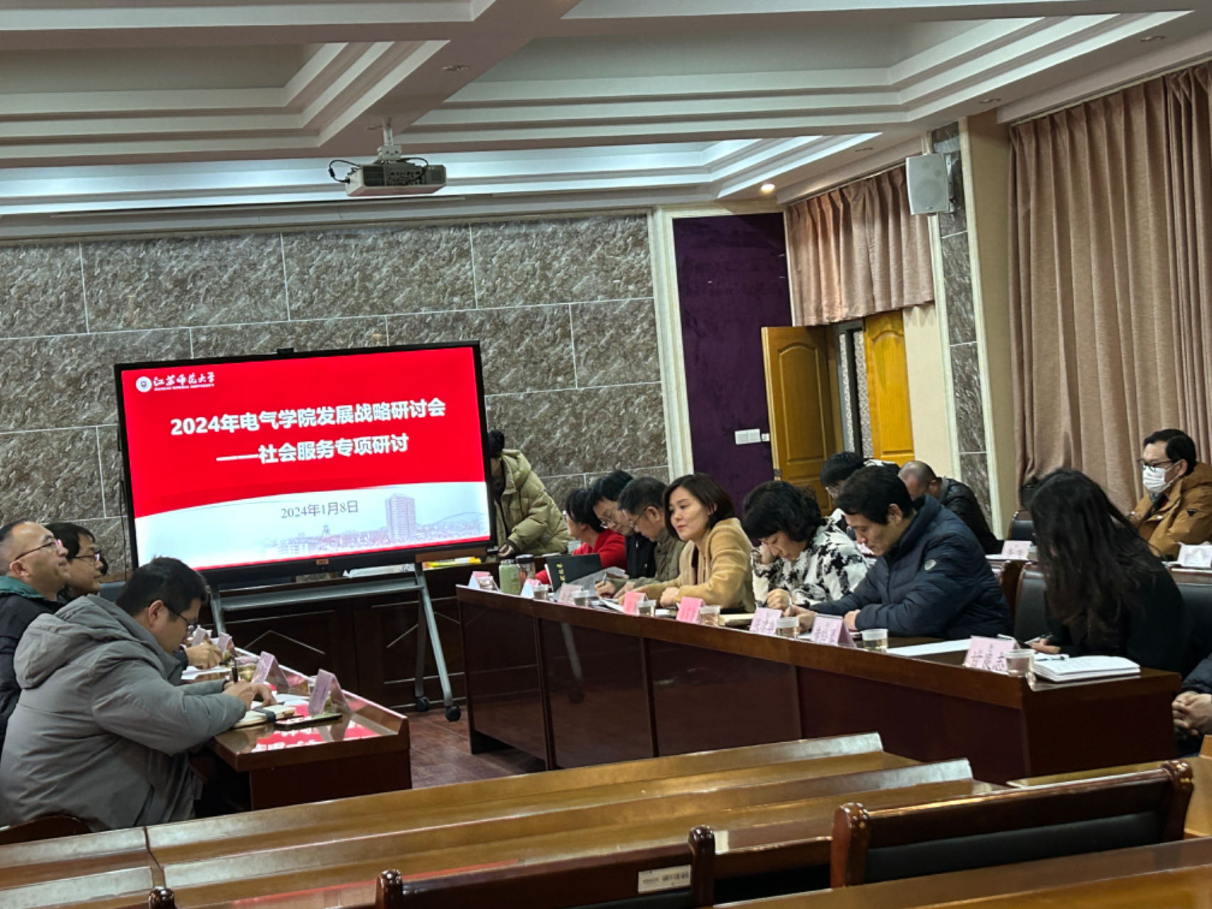 为切实提高学院社会服务能力,以“343”创新产业集群项目为切入点,全面融入徐州市现代化产业创新生态,1月8日下午,电气工程及自动化学院联合物理与电子工程学院以“提升社会服务能力”为主题,召开2024年发展战略研讨会。电气学院全体班子成员及相关专业教师参加会议,特邀物电学院副院长张乐教授、省重点实验室副主任徐晓东教授、省重点实验室党支部书记田康振副教授、物电学院院长助理孟鑫副教授作专题交流。会议由电气学院院长段纳教授主持。