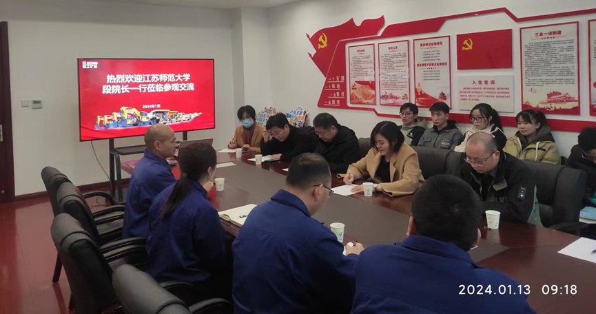 徐州徐工矿业机械有限公司技术部党支部书记马雪冬对段院长一行表示热烈欢迎。她介绍了公司发展历程、产品类型、团队建设、校企合作等情况,强调公司高度重视和认可校企合作,建议加强支部共建、企业导师进课堂等合作模式,并期待与江苏师范大学电气学院开展更广泛和深入的合作。