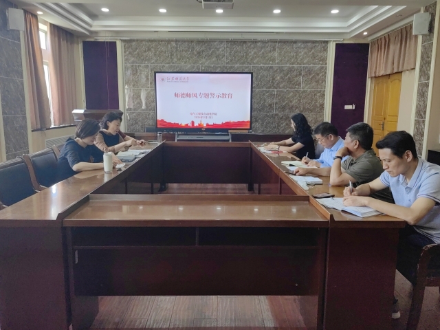 会上,潘震鑫书记带领全体教师深入学习《中共江苏师范大学委员会关于进一步压实师德师风建设主体责任的实施办法》,通报了教育部公开曝光的第十三批7起违反教师职业行为十项准则的典型案例。潘书记提出,全体教师要切实做到师德规范入脑入心见行动,以案为鉴,做到警钟长鸣,筑牢“底线不能触”的思想防线,不断强化职业道德观念,用实际行动诠释师德师风的真正内涵,肩负起立德树人、教书育人的光荣使命。