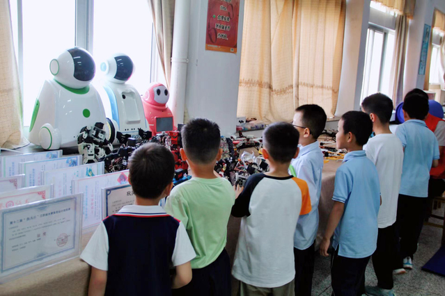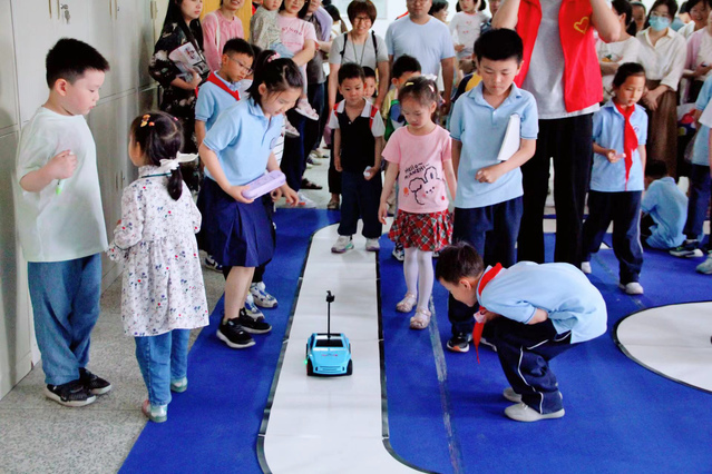 接着,志愿者带领小朋友们参观了机器人实验室,并采用图文视频、实验操作、问答互动、实物展示等方式,讲解了无人机、机器人的原件构成及制作原理,并让小朋友们现场体验了机器人、智能车的操作。