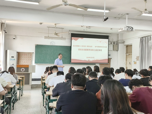 联学强素质,共建促发展。为进一步提升研究生党员骨干的综合素养,5月27日下午,机关第十八党支部联合电气学院研究生党支部于17#403教室开展“研究生创新素养培育之路径审视”共建联学活动,电气学院研究生党员、学生干部和校研究生会成员参加了活动。培训由研究生工作部部长、机关第十八党支部书记王本贤主讲。